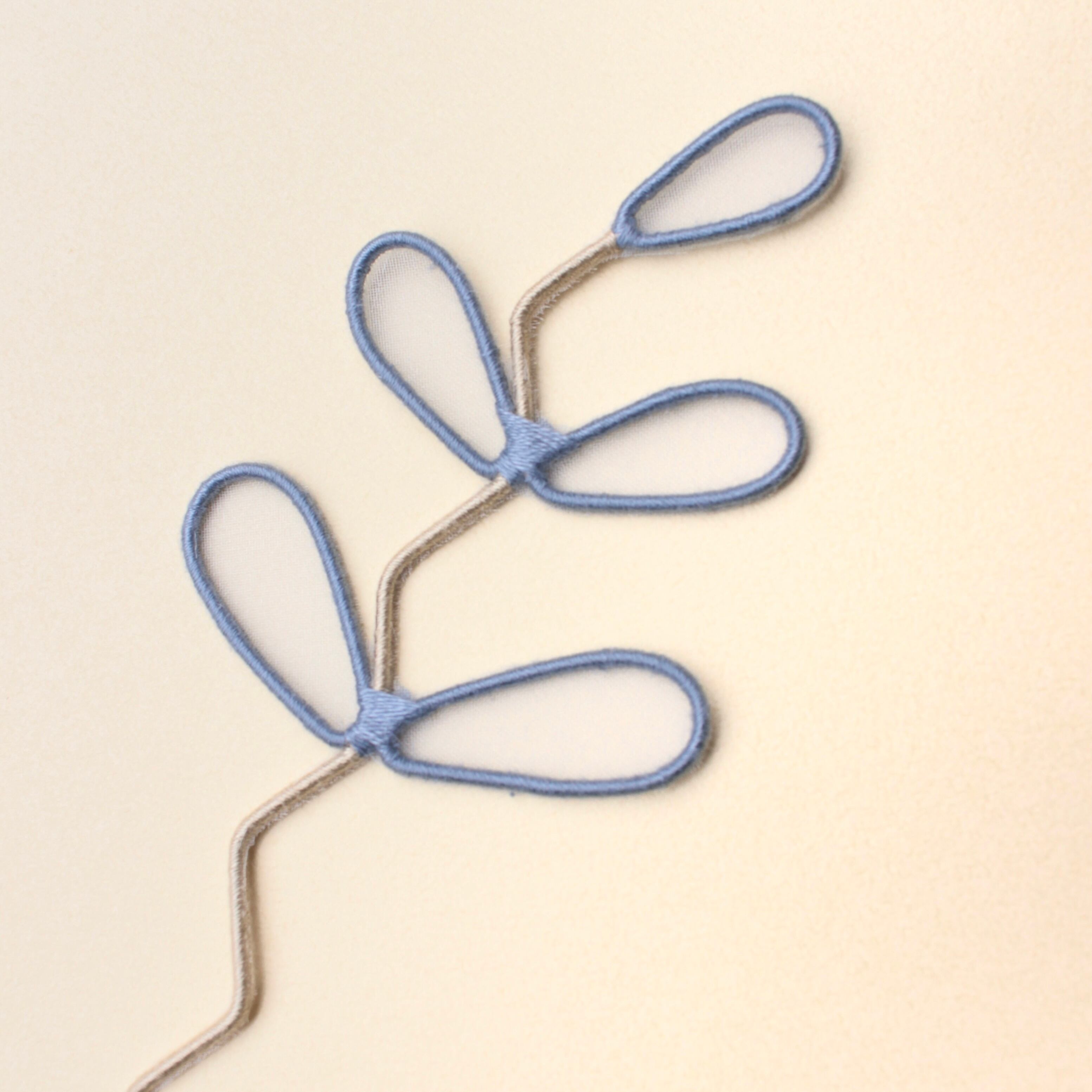 ステンレスワイヤー、ポリエステルオーガンジー布、刺繍糸(コットン)