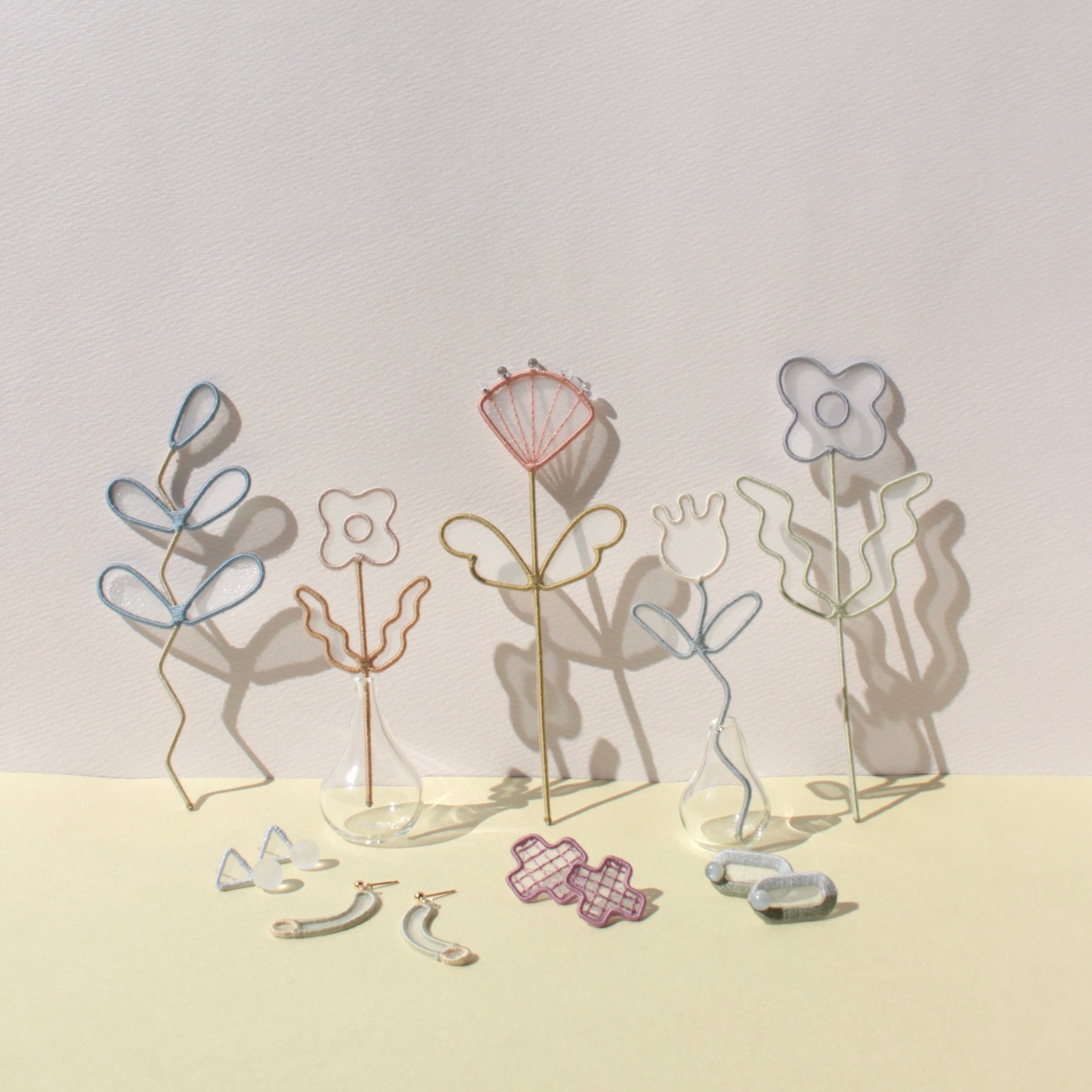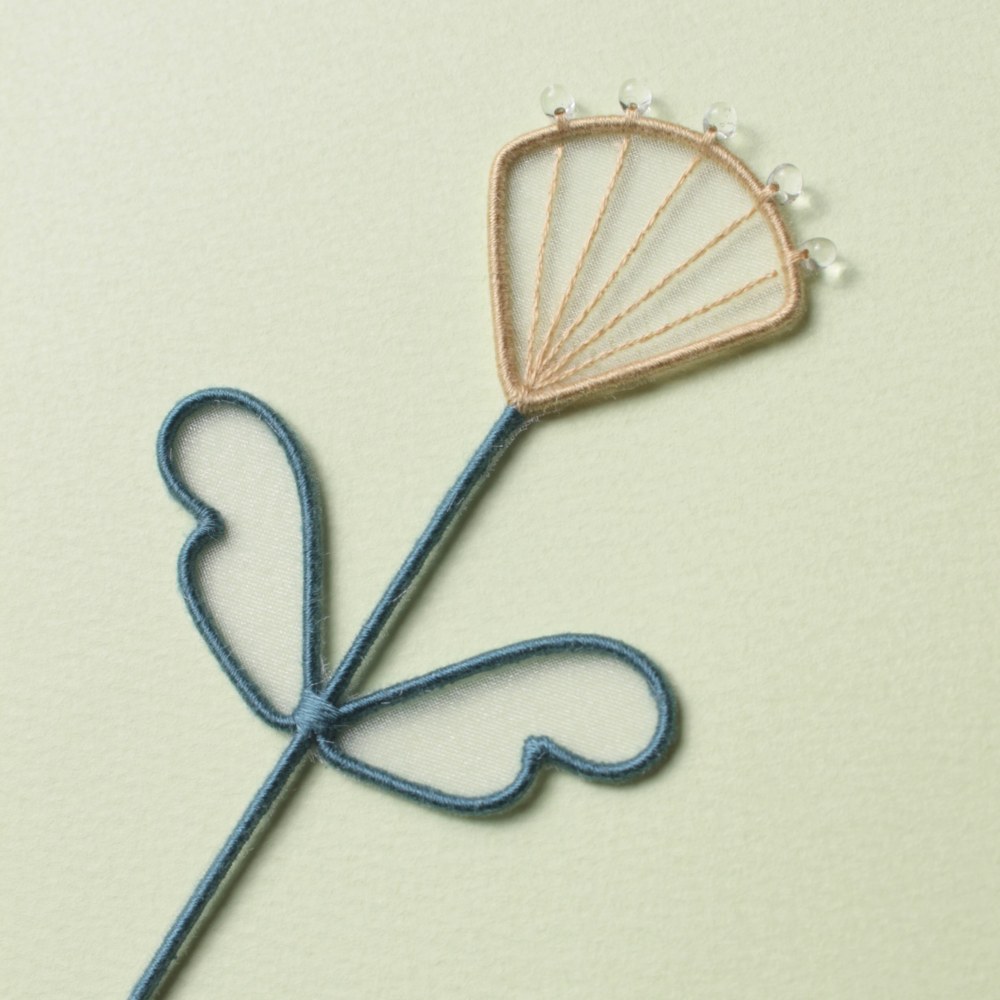 ステンレスワイヤー、ポリエステルオーガンジー布、刺繍糸、ビーズ(ガラス)