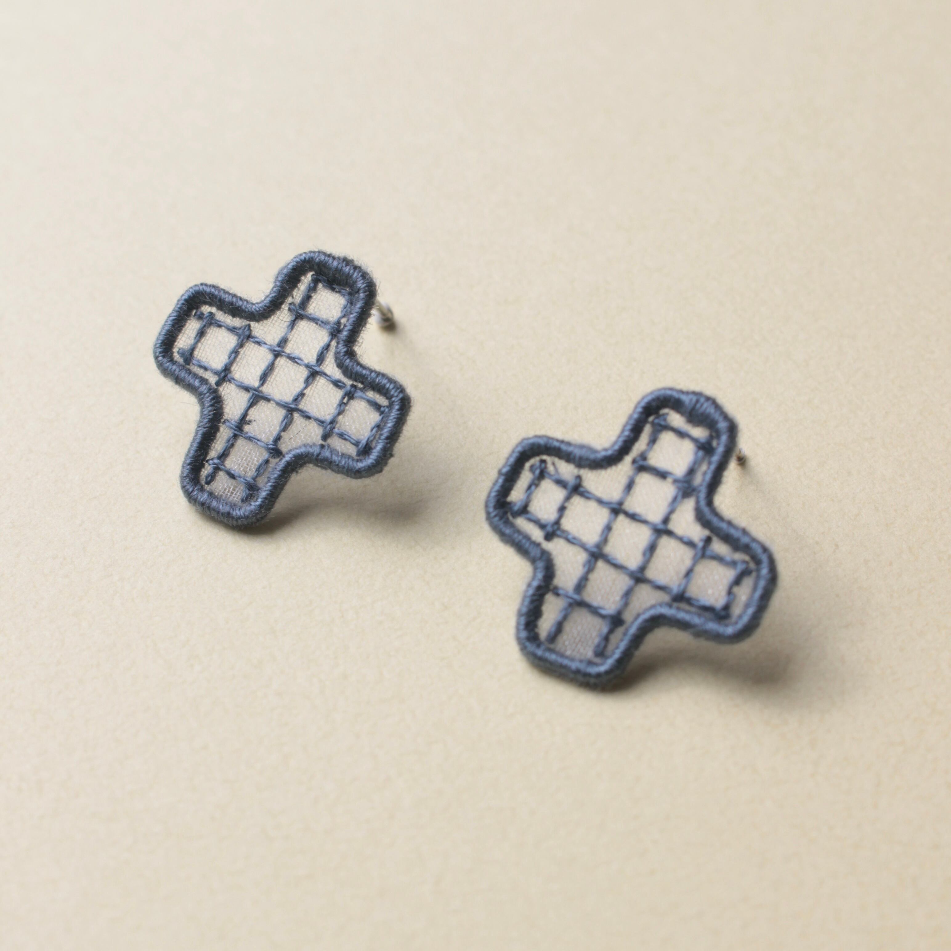 ステンレスワイヤー / ポリエステルオーガンジー / チタンポスト / 刺繍糸(コットン)