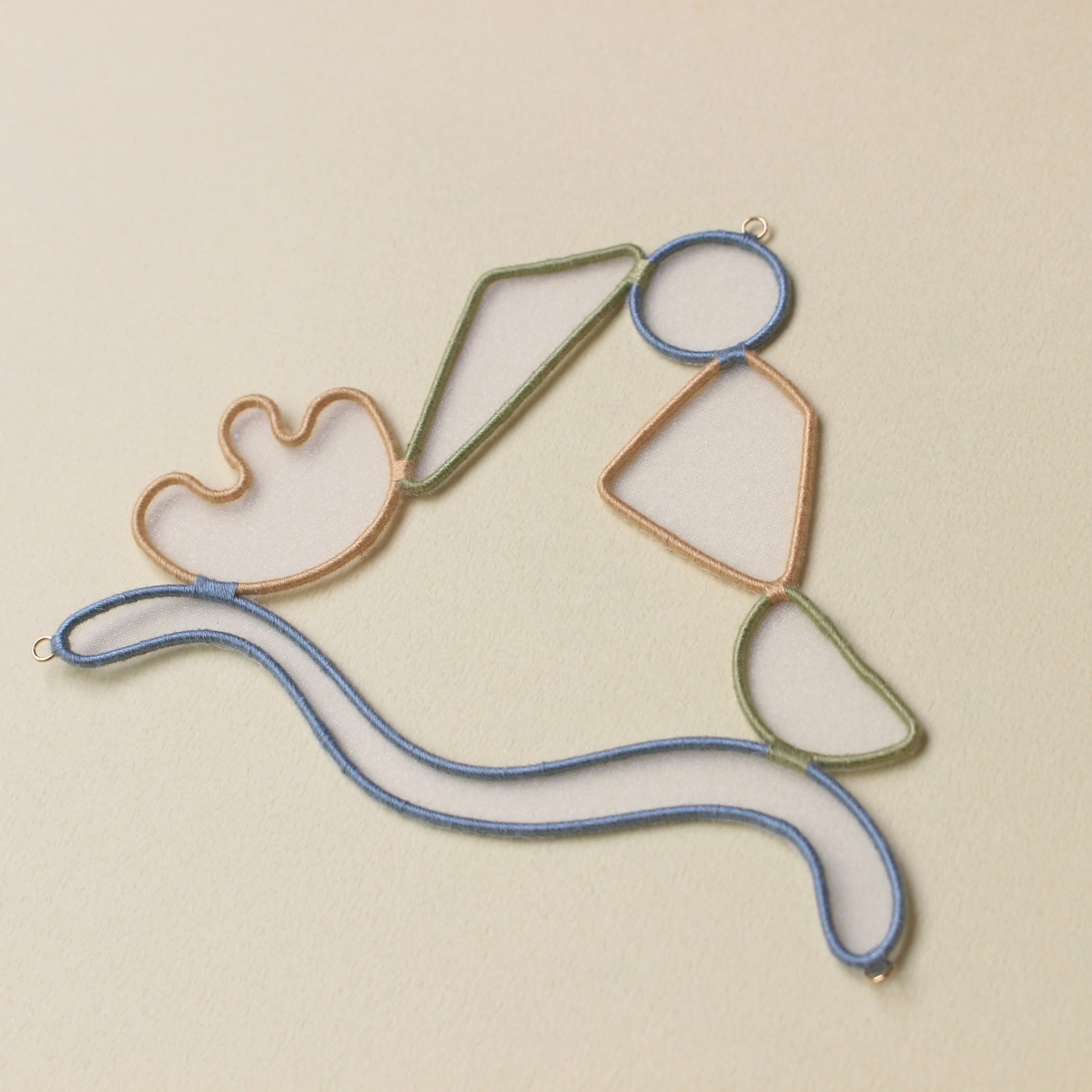 ステンレスワイヤー、ポリエステルオーガンジー布、刺繍糸