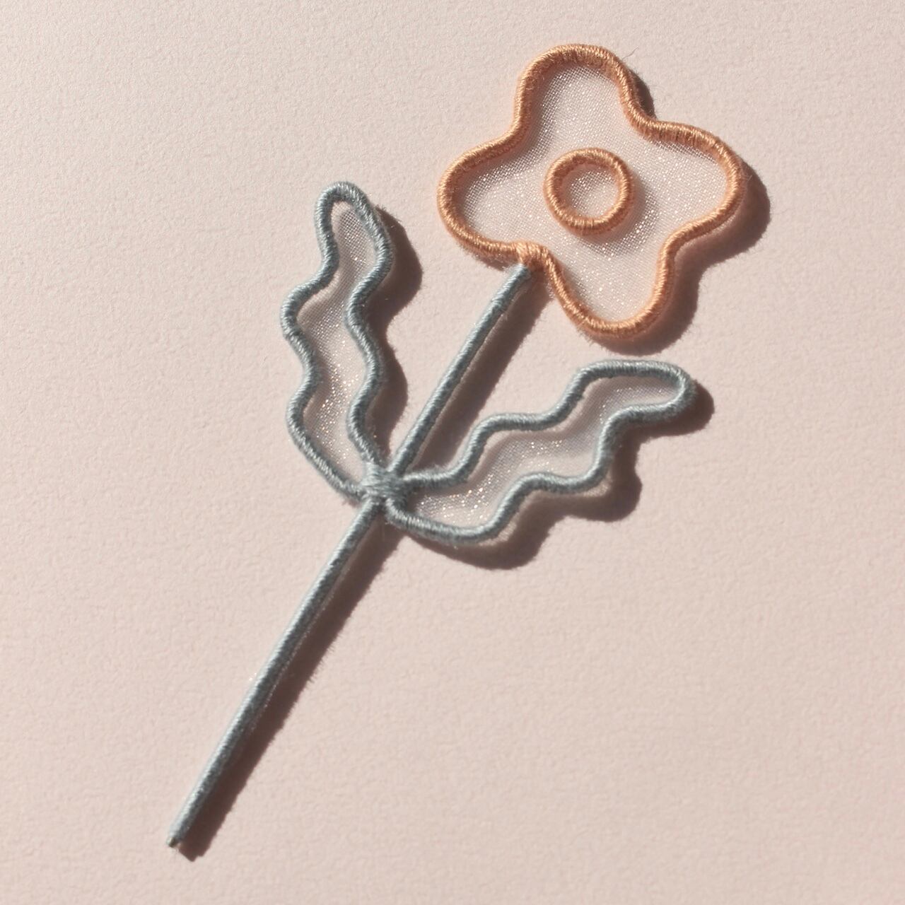 ステンレスワイヤー、ポリエステルオーガンジー布、刺繍糸(コットン)