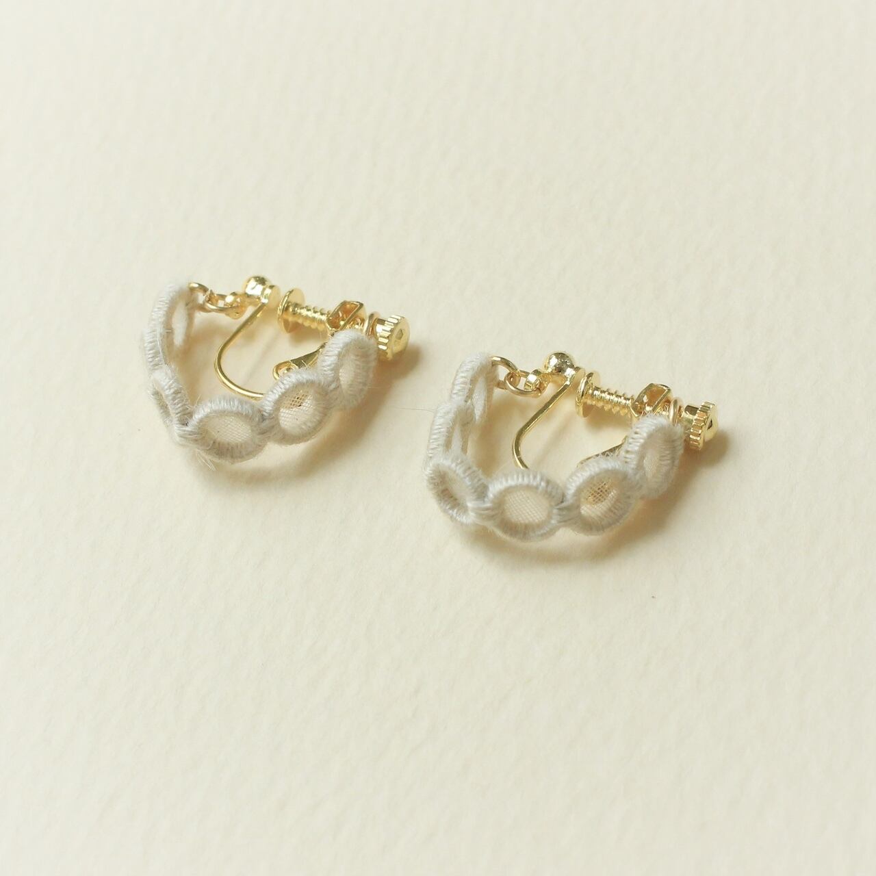 earrings:ポリエステルオーガンジー / メッキ(ゴールド)/ 刺繍糸(コットン)