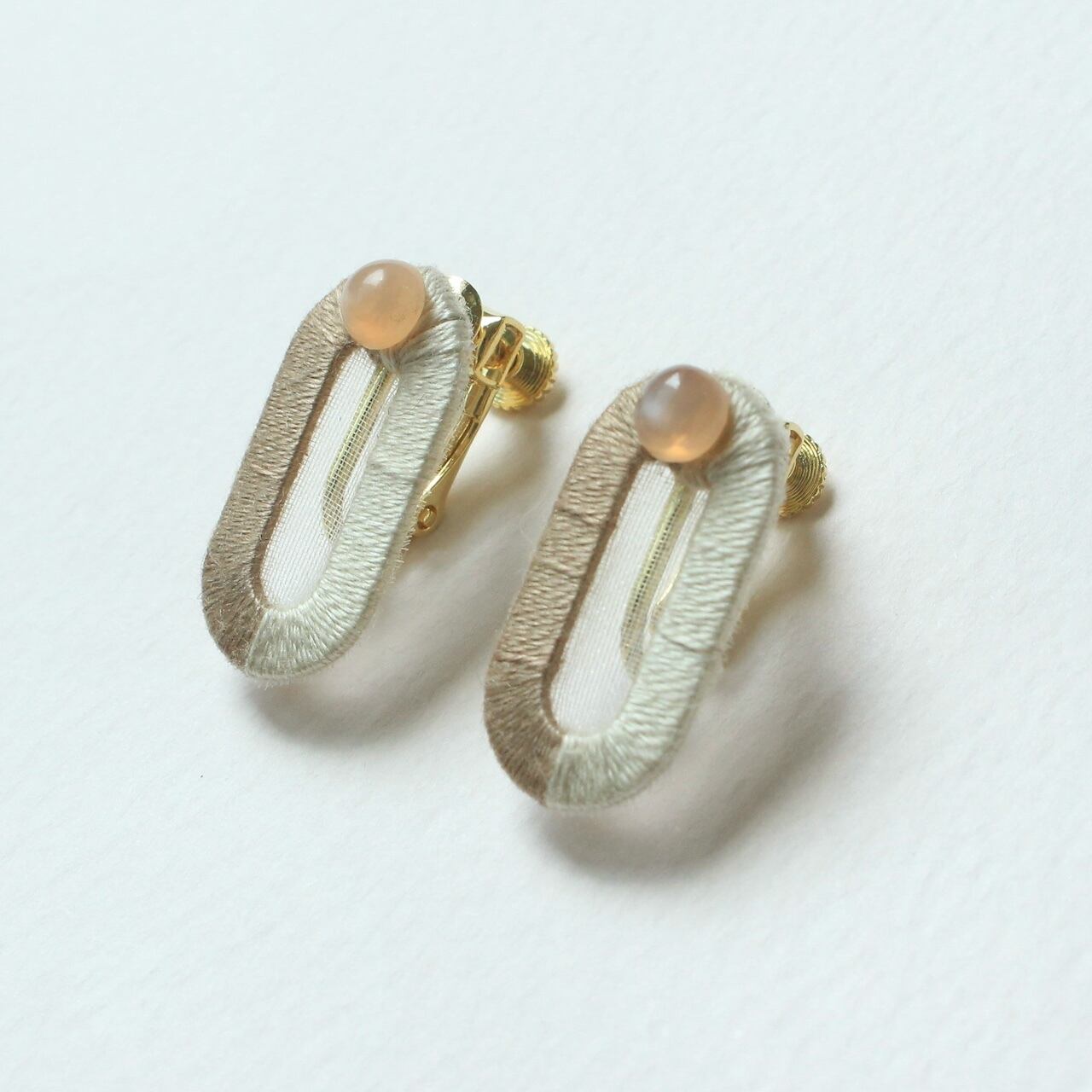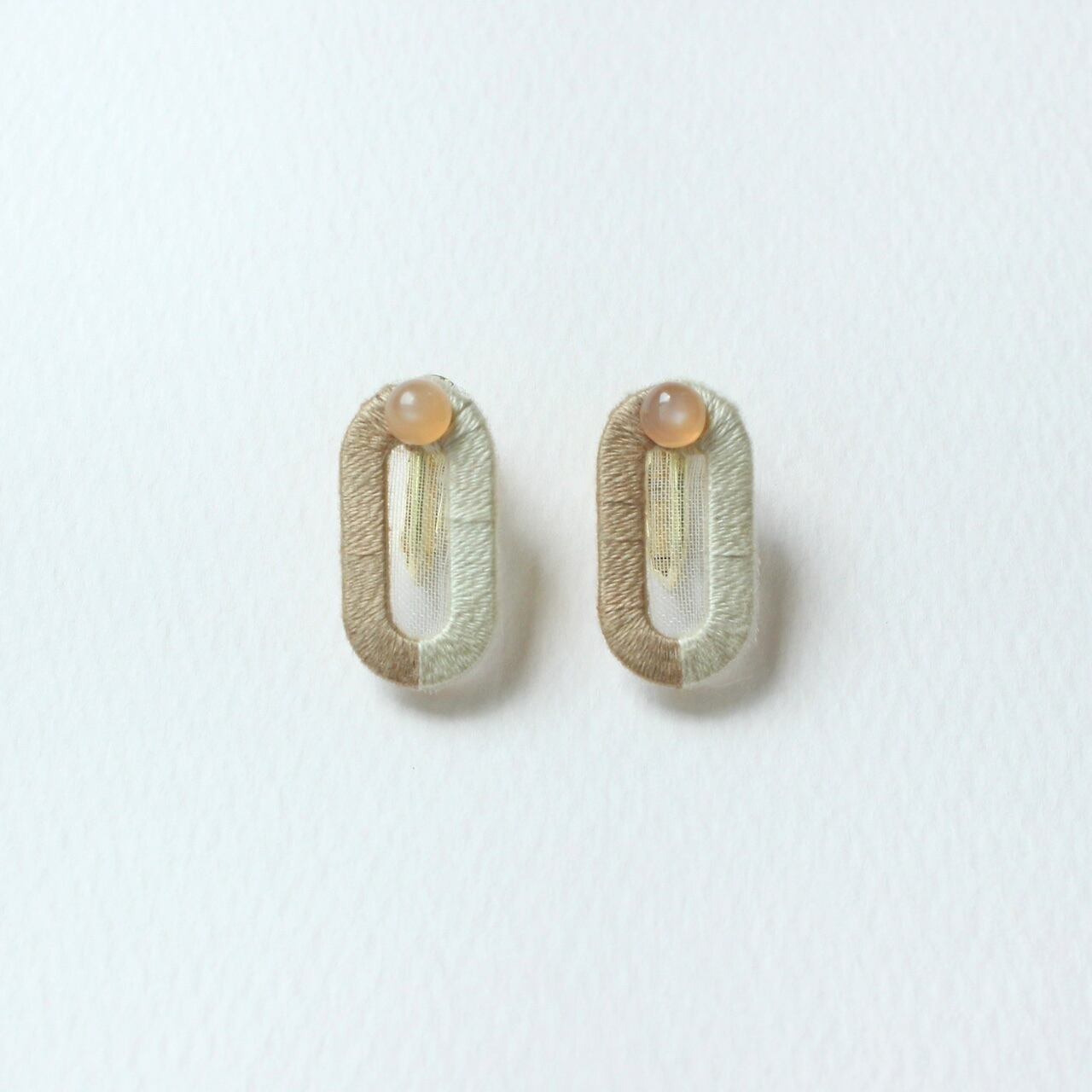 pierces:ポリエステルオーガンジー / チタンポスト / 刺繍糸(コットン) / 天然石(ムーンストーン)