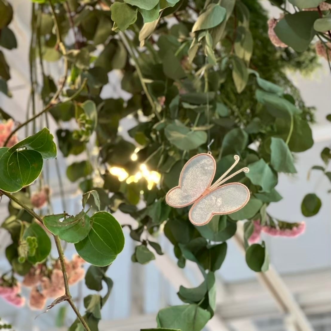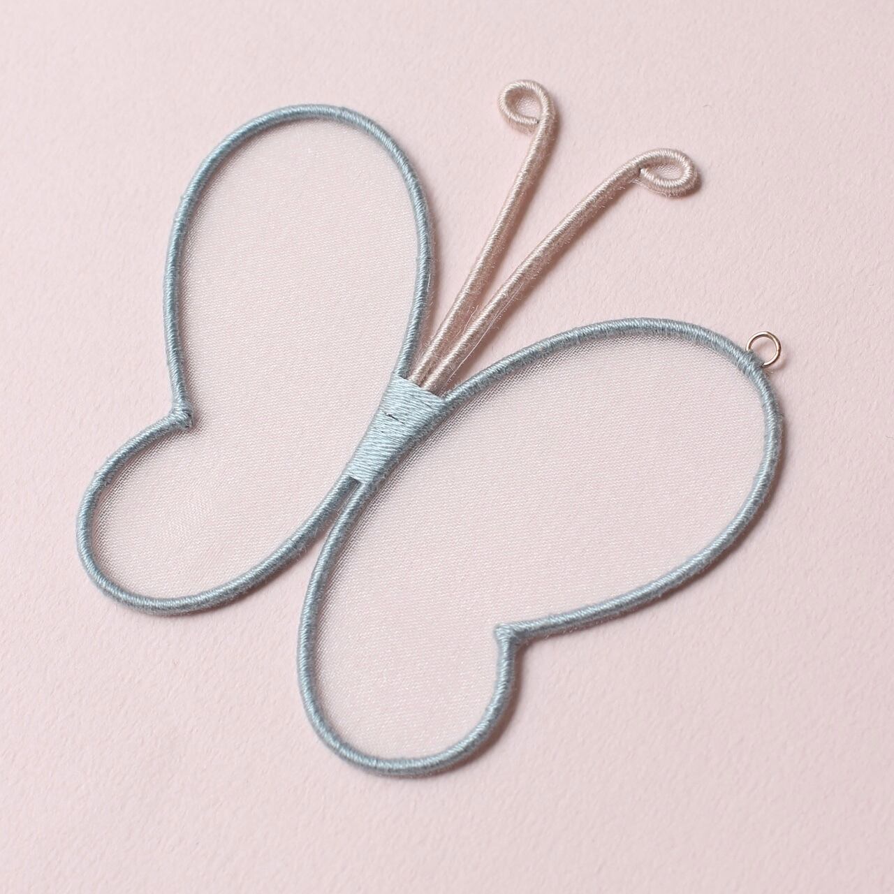 ステンレスワイヤー、ポリエステルオーガンジー布、刺繍糸