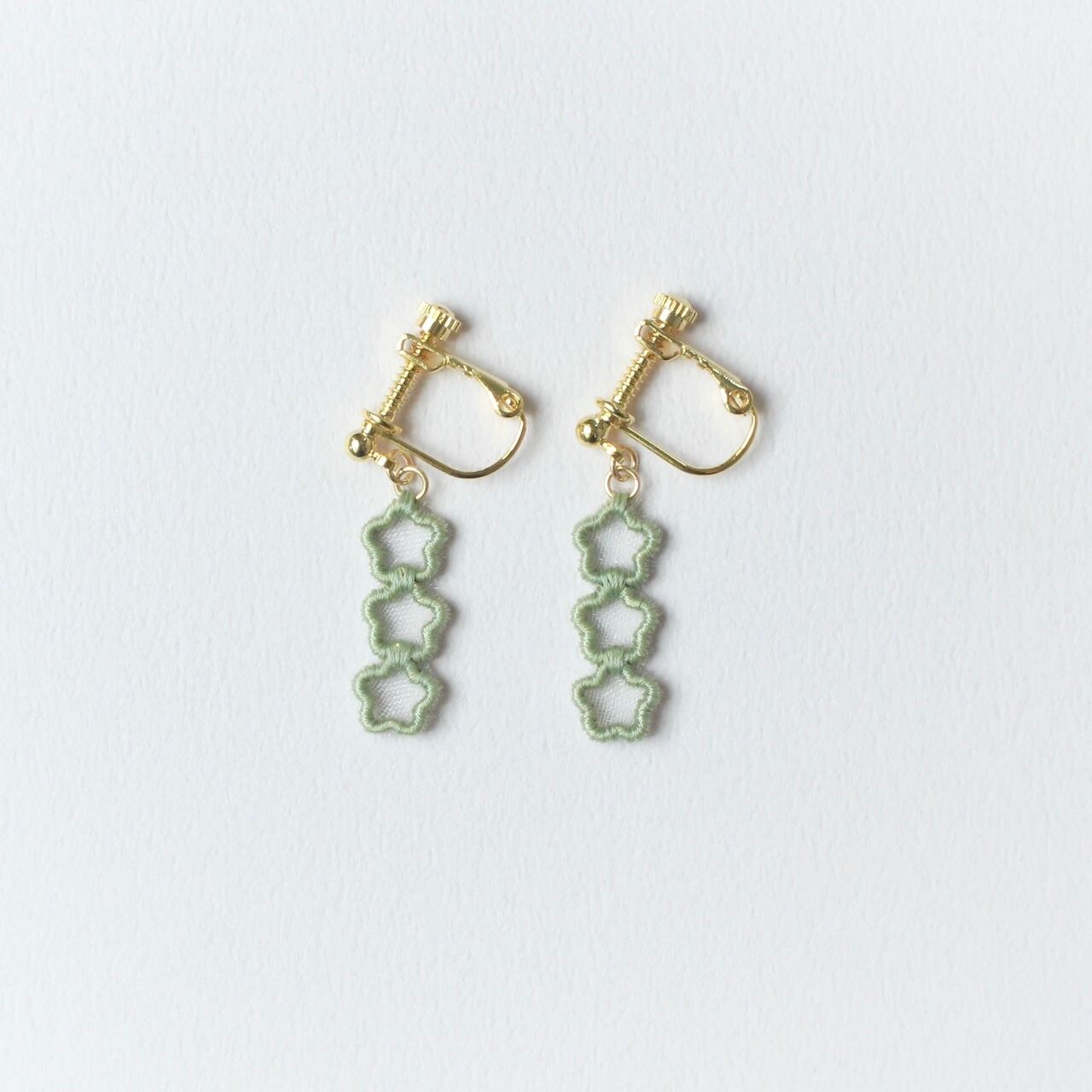 Clip-on earrings: Polyester organza / Gold plating / Polyester sewing thread