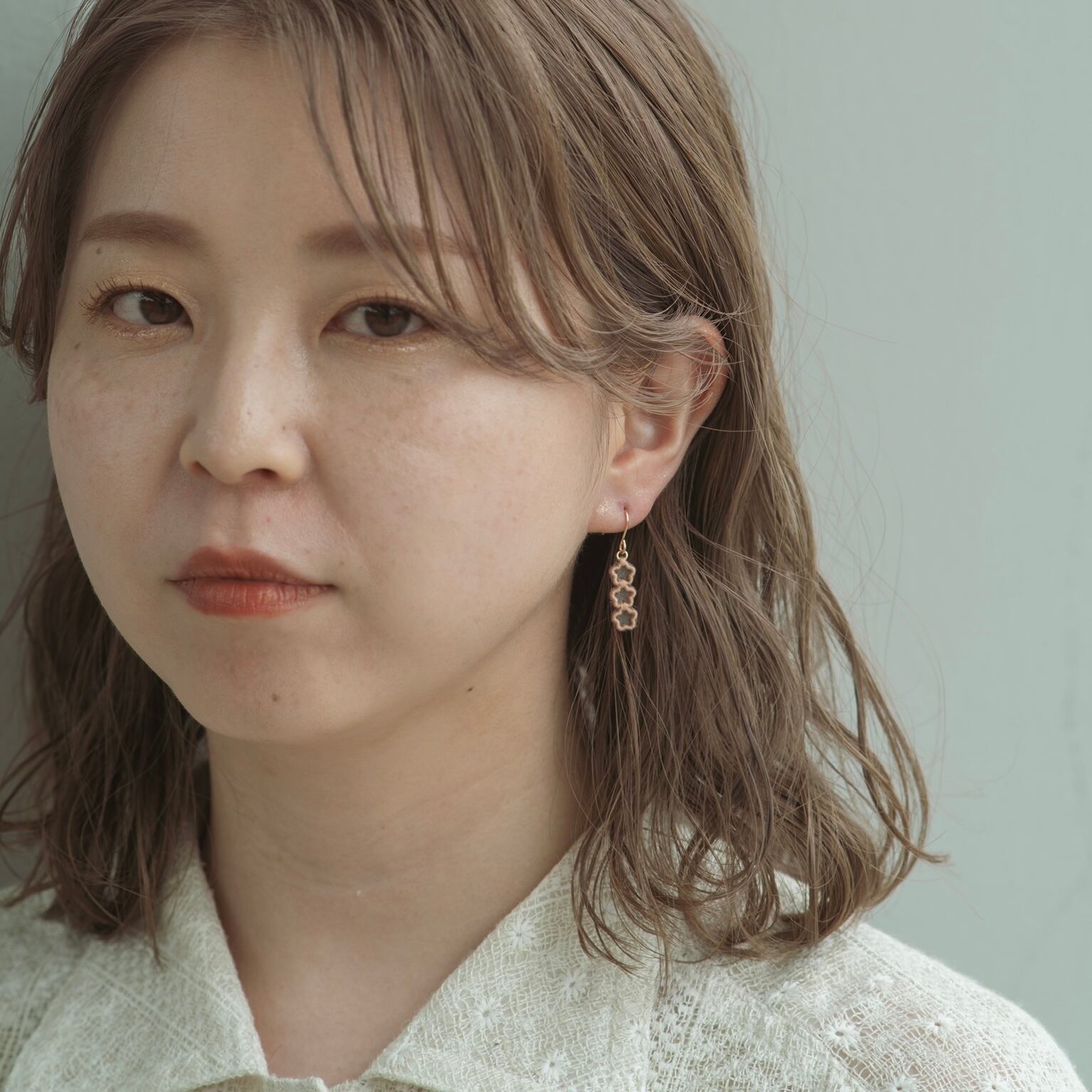 earrings:ポリエステルオーガンジー / メッキ(ゴールド)/ ミシン糸(ポリエステル)