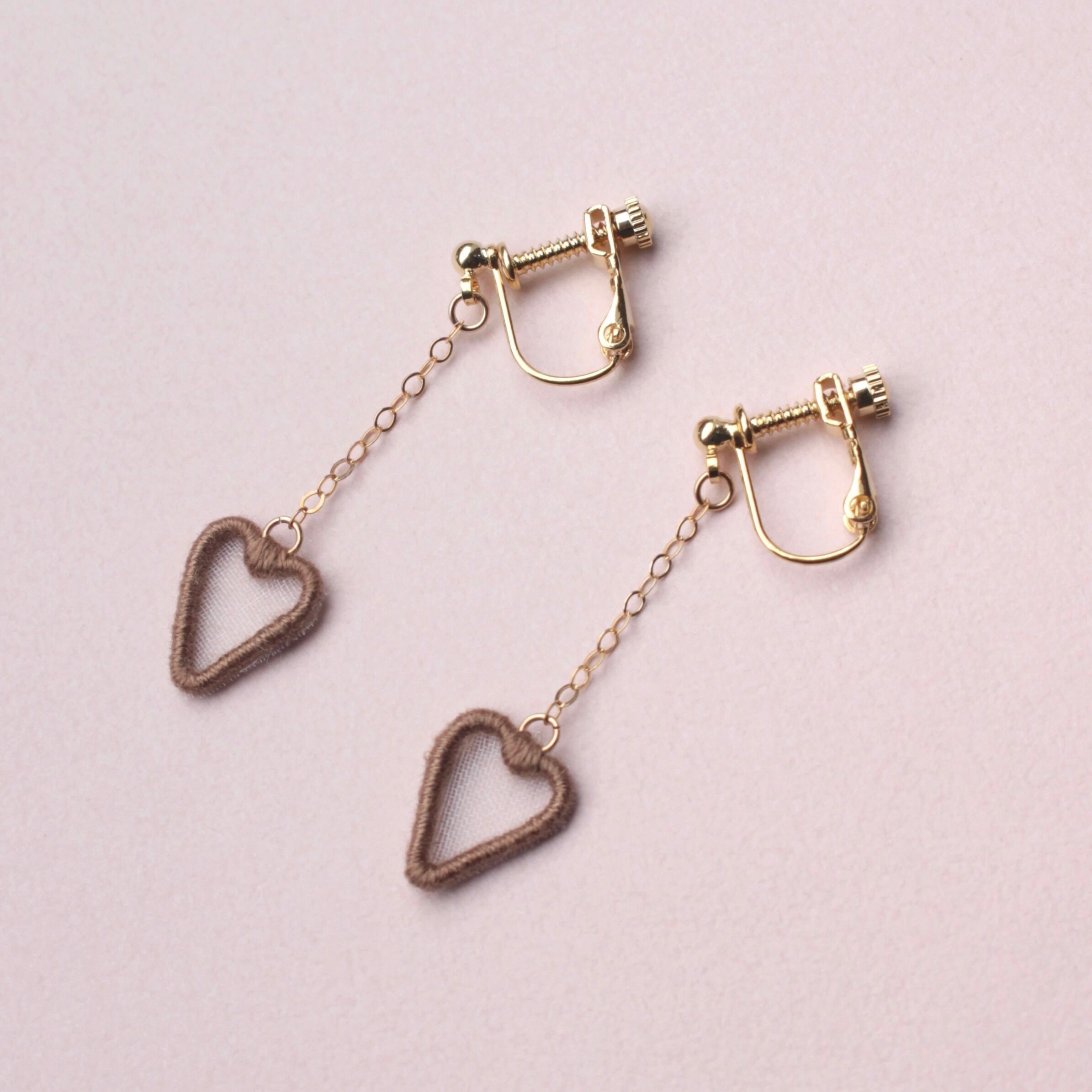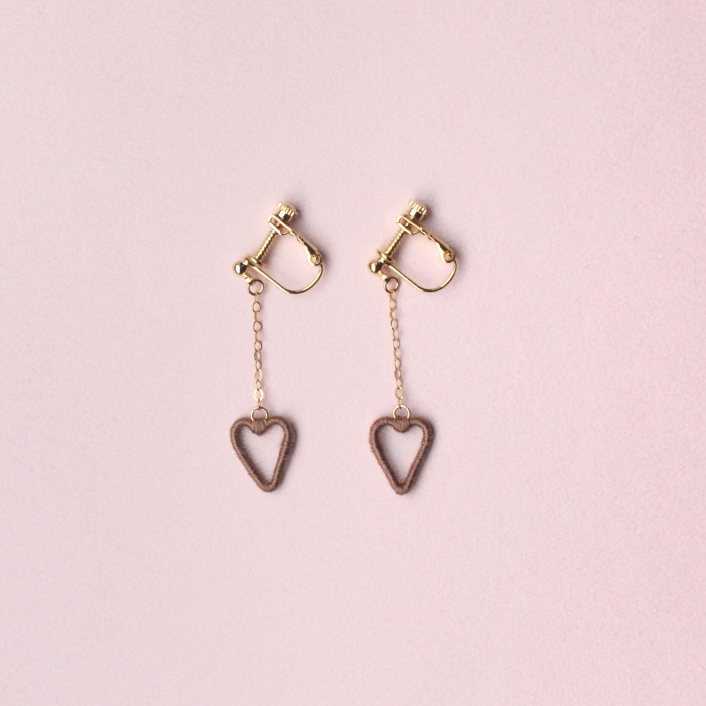 Clip-on earrings: Polyester organza / Gold plating / Cotton embroidery thread