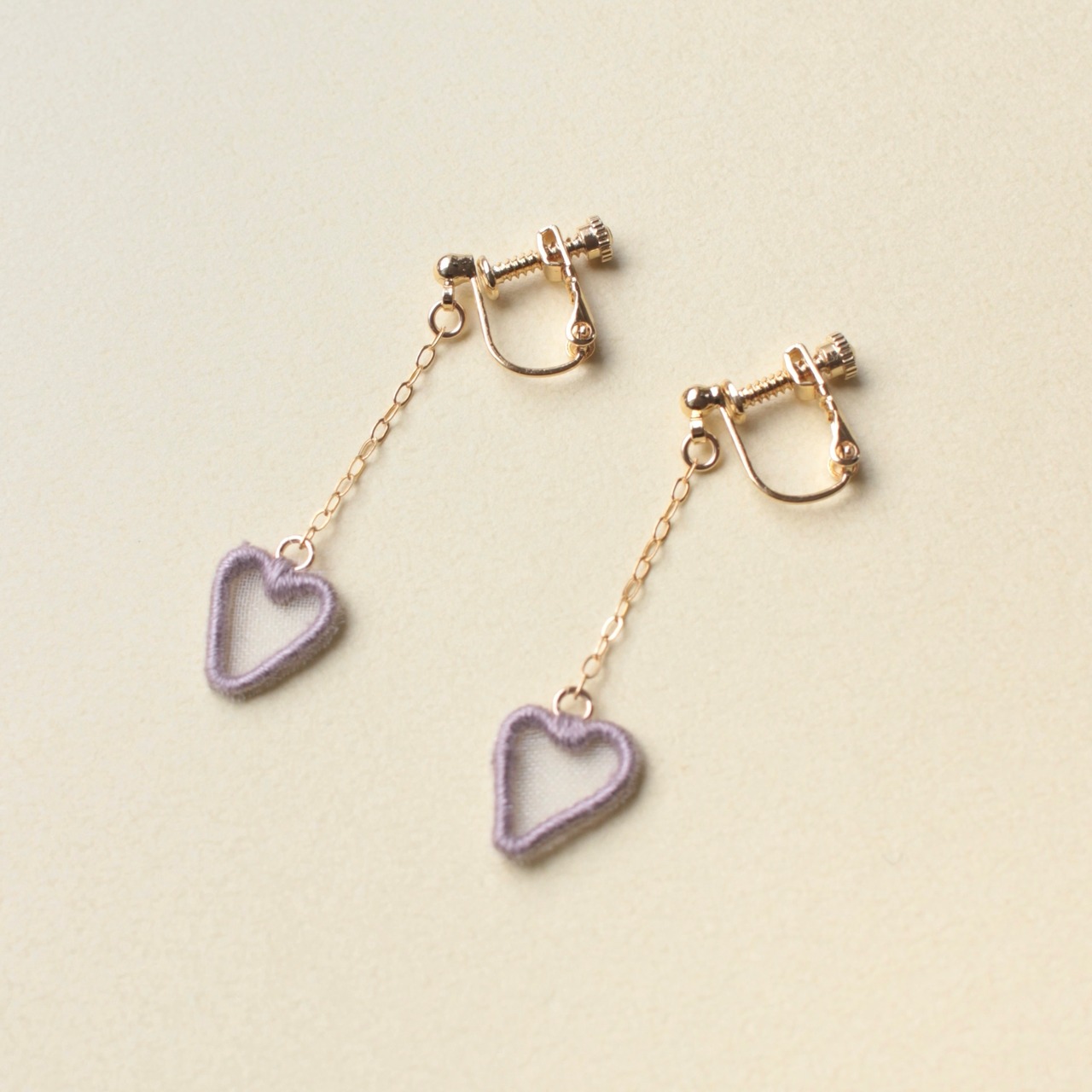 Clip-on earrings: Polyester organza / Gold plating / Cotton embroidery thread