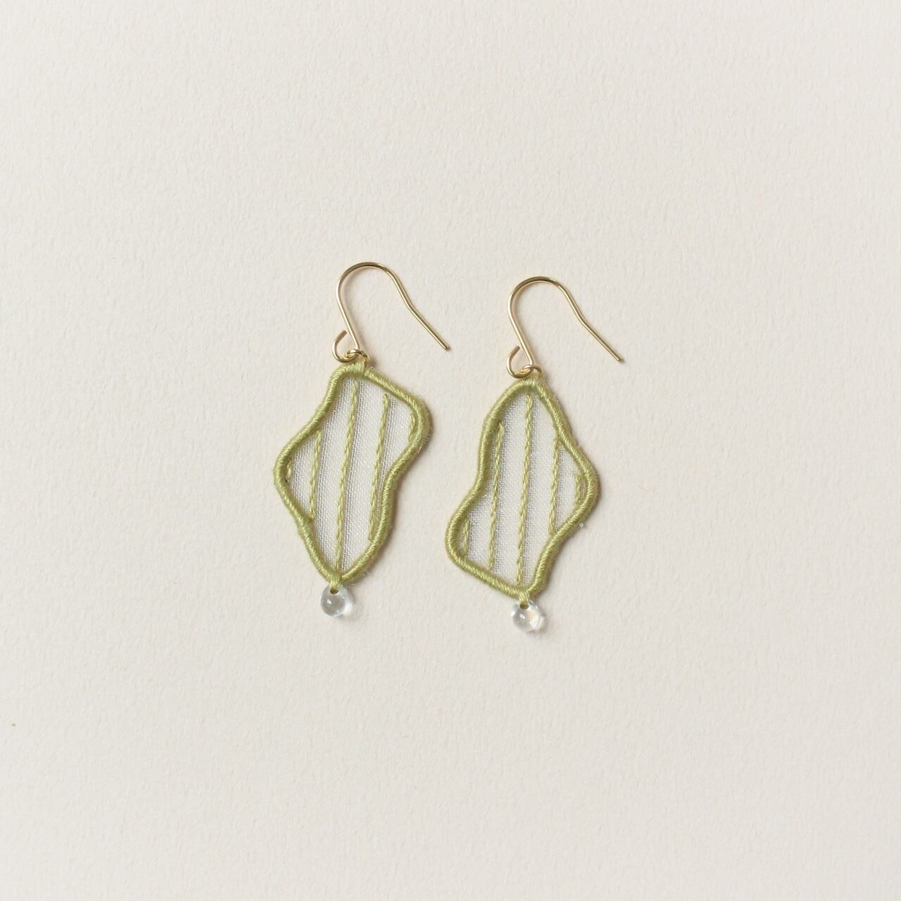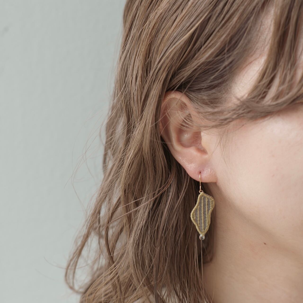 earrings:ポリエステルオーガンジー / メッキ(ゴールド)/ 刺繍糸(コットン)/ガラスビーズ