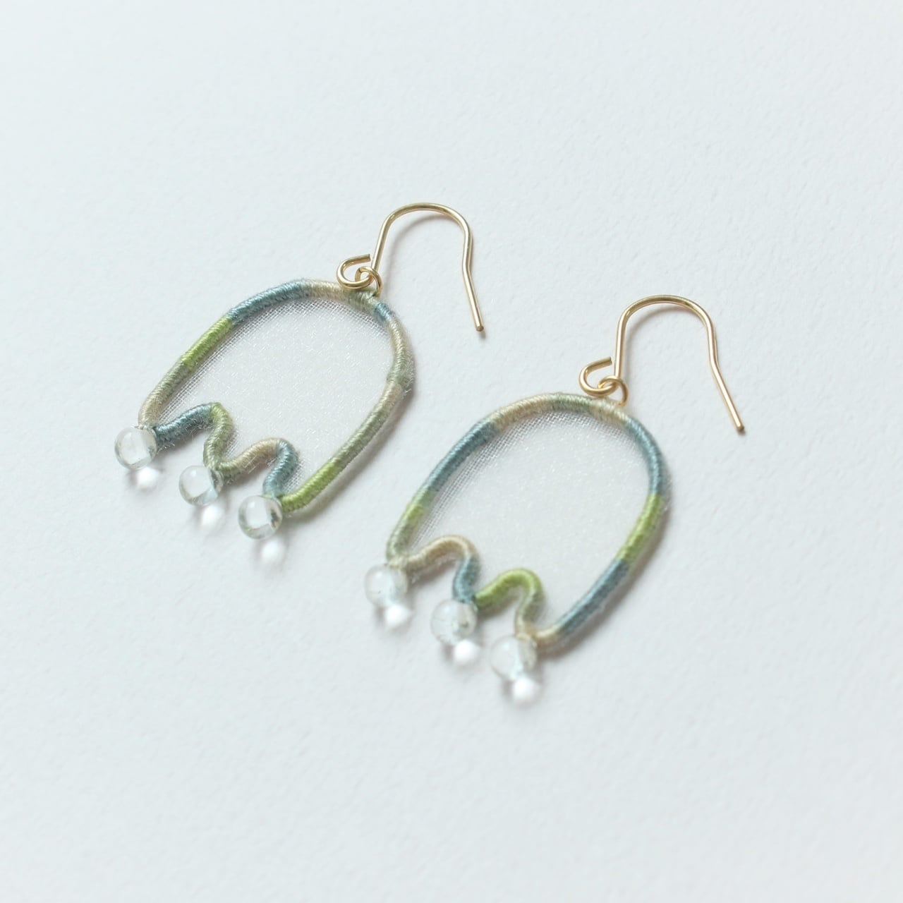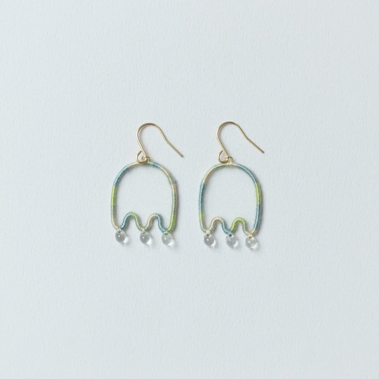 earrings: ポリエステルオーガンジー / メッキ(ゴールド)/ 刺繍糸(コットン)/ガラスビーズ